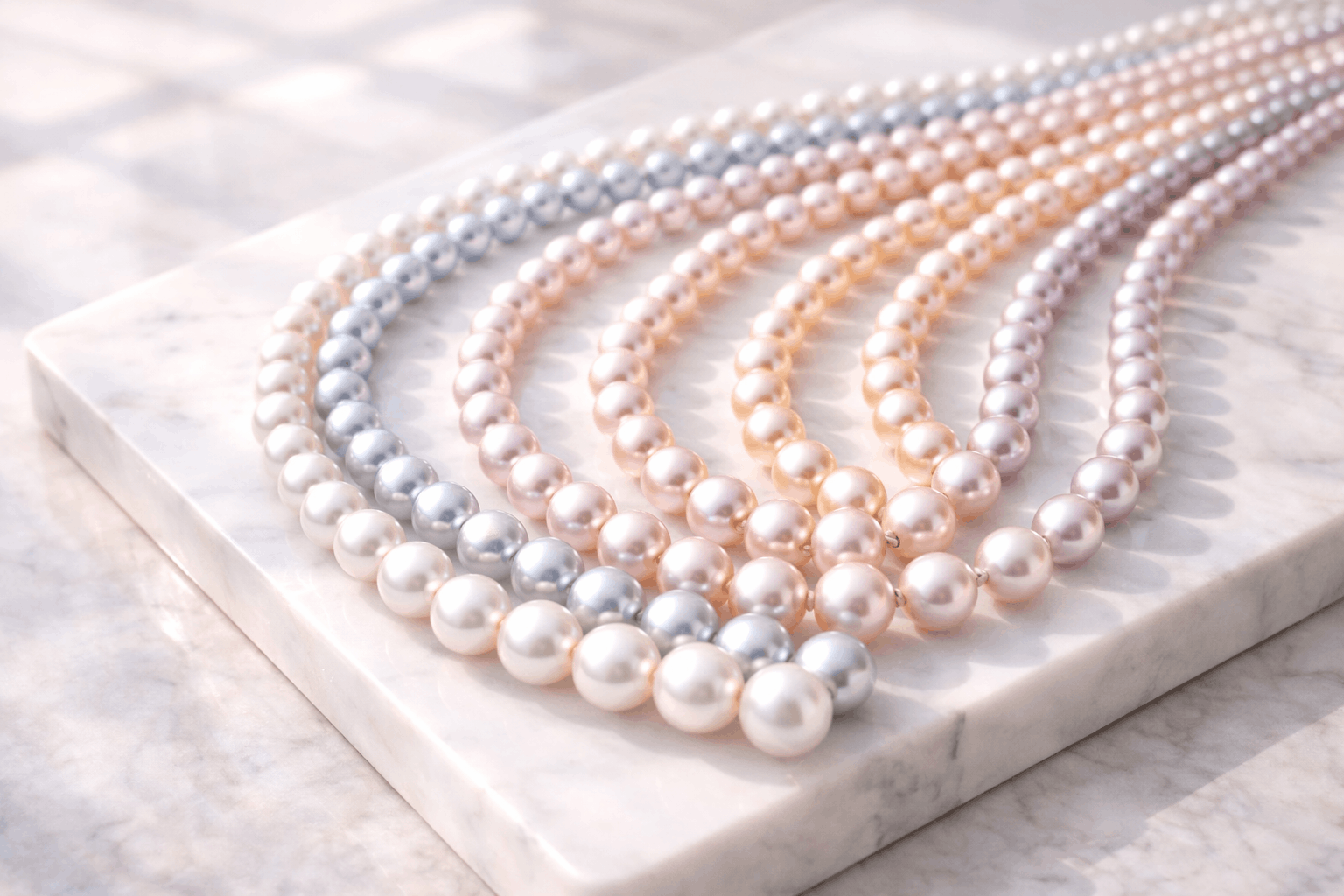 إذا كانت اللؤلؤ الدائرية المثالية مهمة بالنسبة لك، فإن لؤلؤ أكويا هو الإجابة بشكل قاطع. يُشتهر في عالم اللؤلؤ باسم “الدوارات الثمانية الاتجاهات” — أي أنه يتدحرج بسلاسة وتوازن في أي اتجاه على سطح مستوٍ. هذا النوع من الكمال الهندسي نادر فعليًا في الطبيعة وهو أحد أكبر الأسباب التي تجعل أكويا يحظى بأسعار أعلى. كل لؤلؤة في سلسلة مطابقة ستكون دائرية متطابقة. يبدو الأمر شبه غير طبيعي مدى اتساقها.