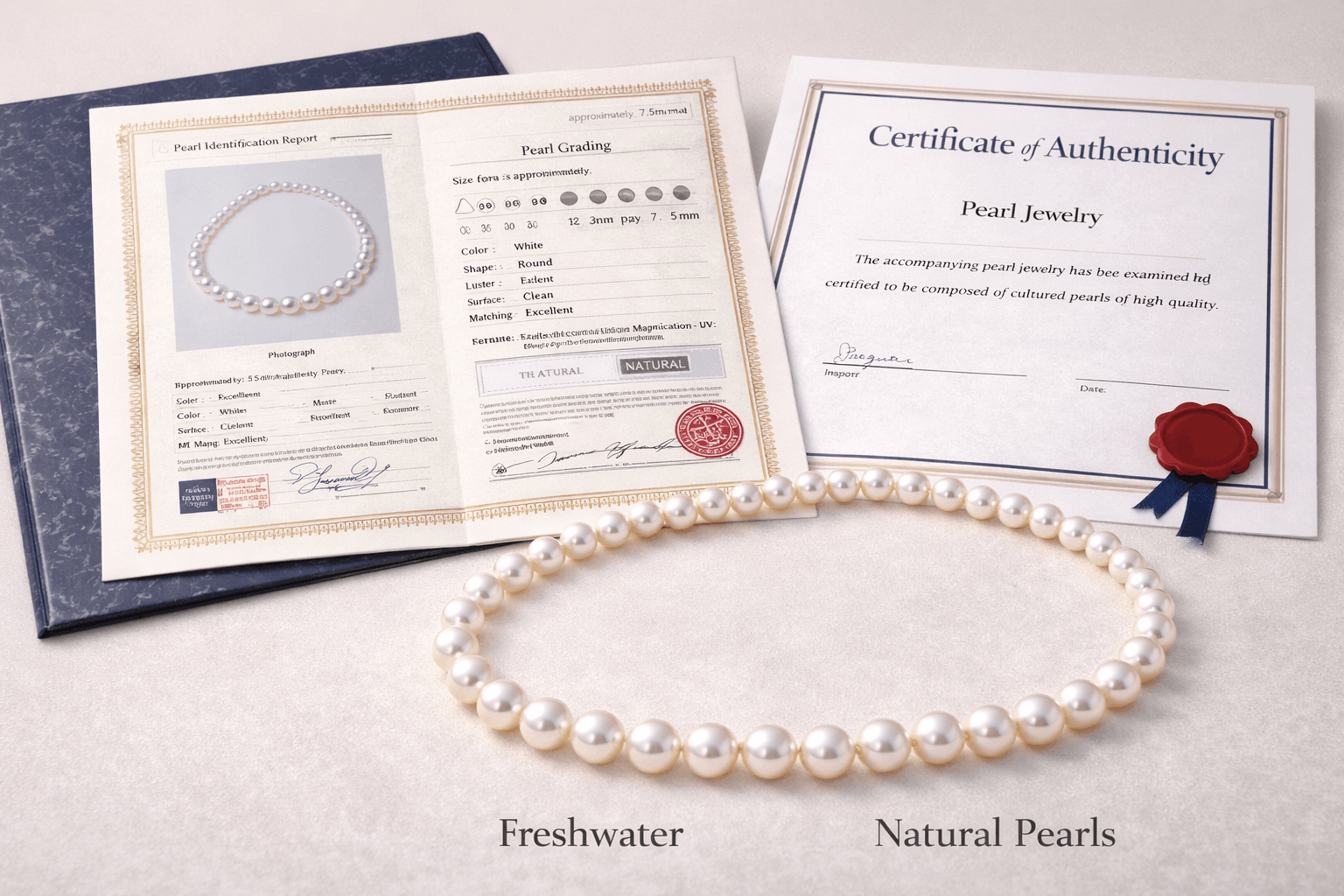 ميكيموتو تشمل شهادات مع كل عملية شراء تلقائيًا. توثق النوع، الدرجة، المواصفات الرئيسية. الوثائق لها وزن حقيقي في السوق. معترف بها عالميًا من قبل التجار. لكن التفاصيل أقل شمولاً مما تقدمه المتخصصون في اللؤلؤ عادة.