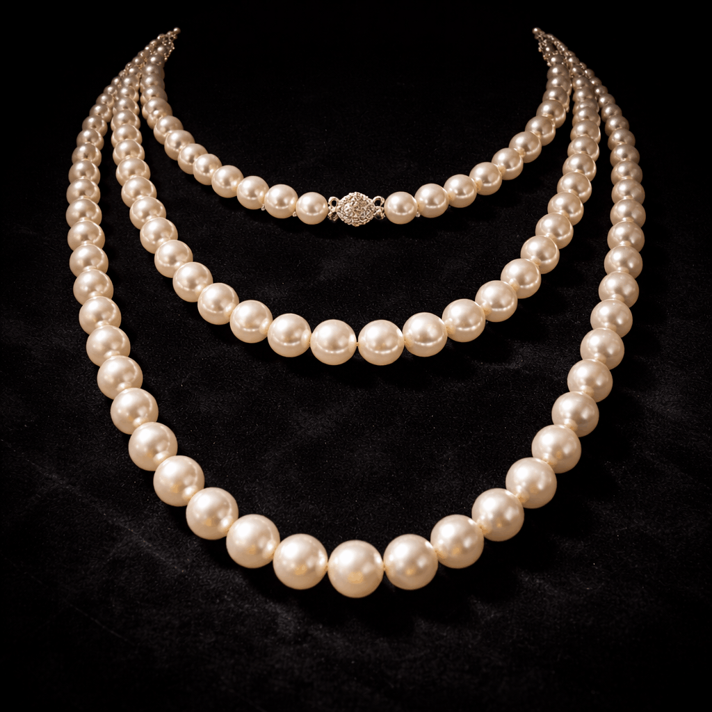 الآن، لا تحتاجين إلى الثلاثة لتبدئي. حتى مجرد سلسلتين بأطوال مختلفة بوضوح — تشوكر مع قطرة pendant أطول — يلتقط اتجاه القلائد المتعددة الطبقات باللؤلؤ بجمال. بالإضافة إلى ذلك، البدء بطبقتين أولاً هو الطريقة الأسهل حقاً للتعود على المظهر قبل إضافة الثالثة. لذا عامليه كتطور تدريجي. وليس التزاماً كلياً أو لا شيء.