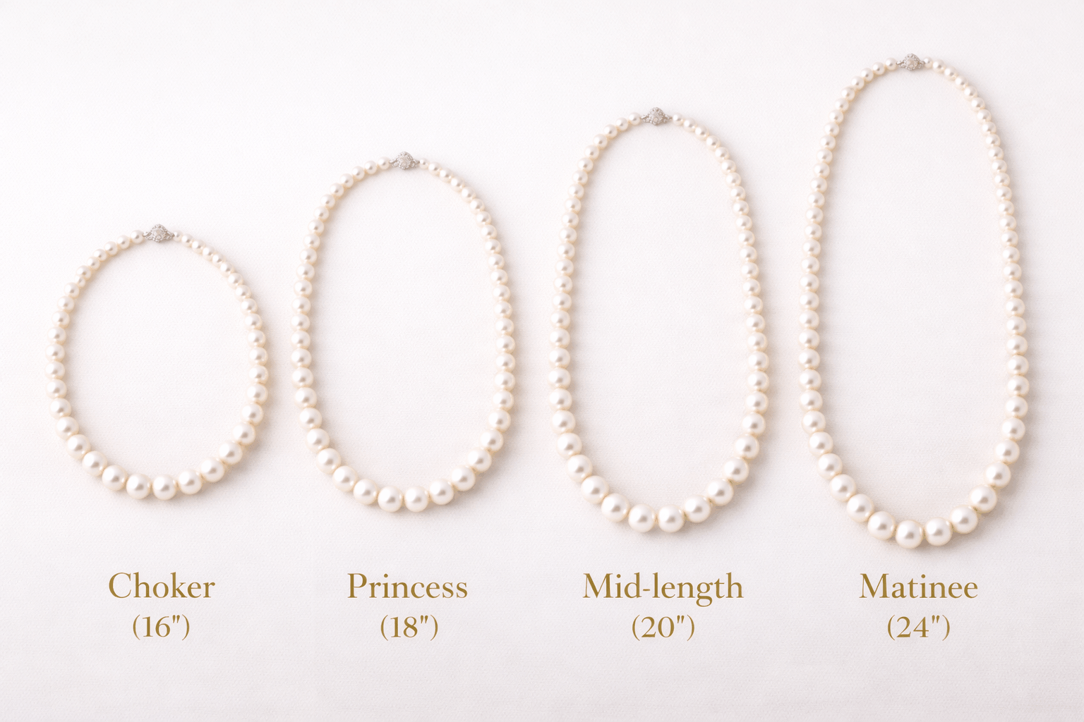 خط العنق يحدد كل شيء عند اختيار عقد لؤلؤ لتصميم فستان الزفاف. إذا أخطأت في الطول، حتى اللؤلؤ الجميل يبدو غريباً أو يختفي تماماً في الصور.